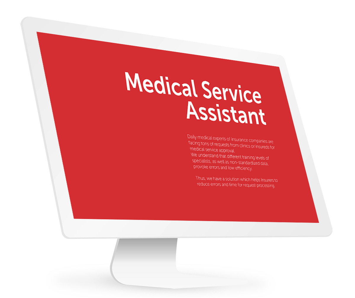 يواجه الخبراء الطبيون في شركات التأمين يوميًا العديد من الطلبات من قبل العيادات أو المؤمن عليهم للحصول على موافقة للخدمة الطبية نحن نتفهم أن مستويات التدريب المختلفة للمتخصصين، وكذلك البيانات غير الموحدة ، تسبب أخطاء وكفاءة منخفضة وبالتالي ، لدينا حل يساعد شركات التأمين على تقليل عدد الأخطاء والوقت الذي تستغرقه في معالجة و قبول الطلب